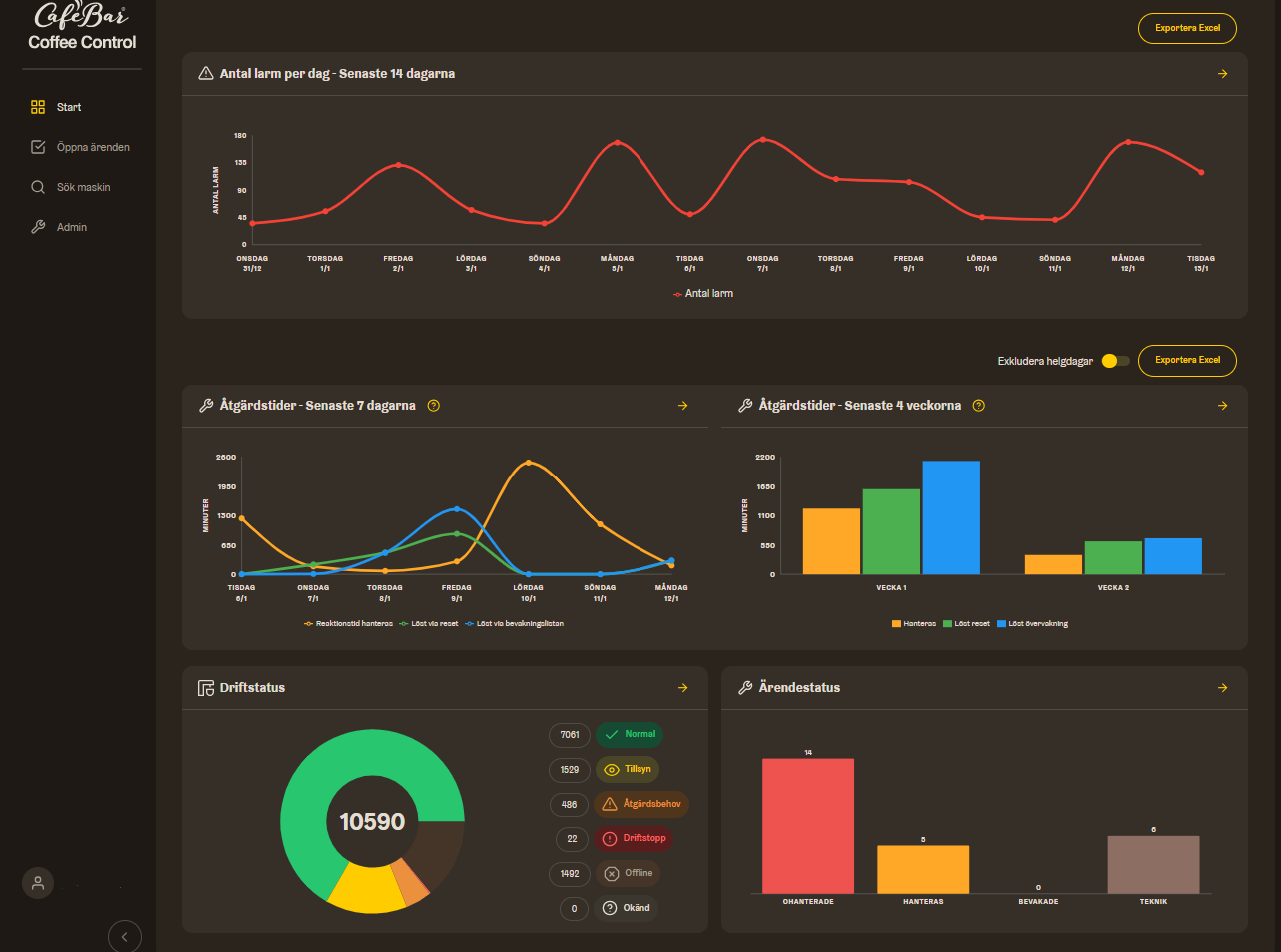 Med hjälp av Coffee Analytics och tillhörande serviceportal kan Café Bar monitorera över 10 000 maskiner och 200 000 koppar dagligen. Något som både hjälper våra kunder och förbättrar kaffeinfrastrukturen på ett snabbt och helt unikt sätt.
