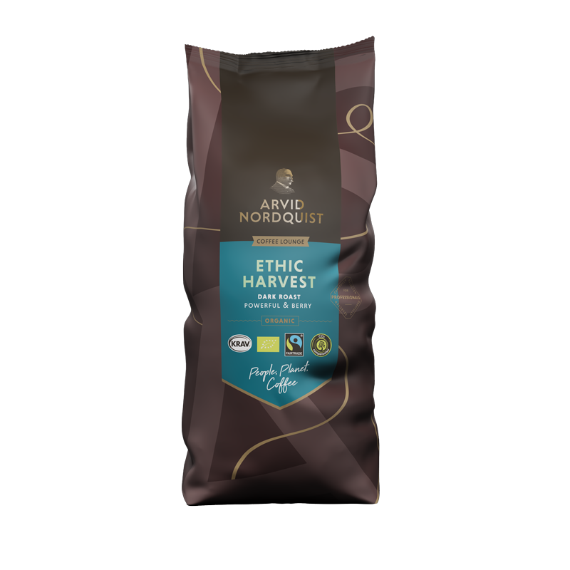 Kraftfull smak med tydliga toner av mörka bär. Behagligt fyllig eftersmak. Ethic Harvest är 100% Fairtrade-certifierat, 100% ekologiskt, 100% klimatkompenserat och rostat utan användning av fossila bränslen.